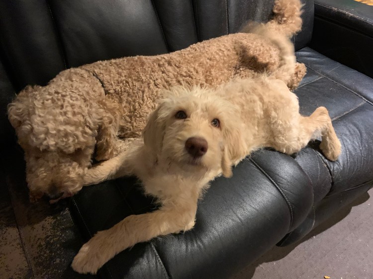 So these are my fur babies!!!!! Pluto is 2 year old Labradoodle (he is at the back) and Ariel is only 6 months and also a Labradoodle. The make me laugh every day and spending time with these 2 fur balls is the best medicine you can have for absolutely everything that ails you